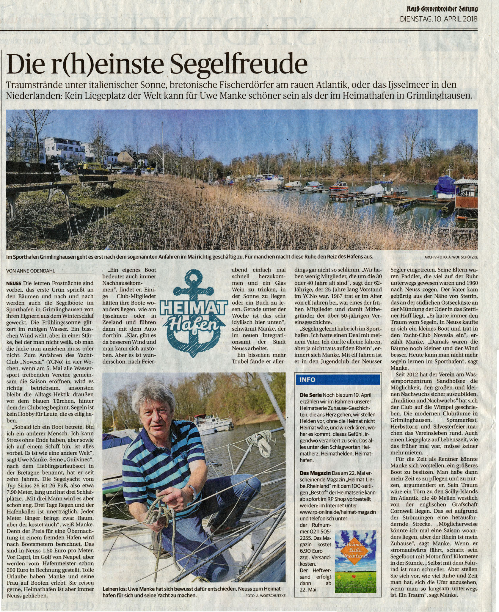 Schöner Artikel in der Neuß-Grevenbroicher Zeitung über unser langjähriges Vorstandsmitglied Uwe Manke und unseren schönen Sporthafen in Neuss Grimlinghausen …