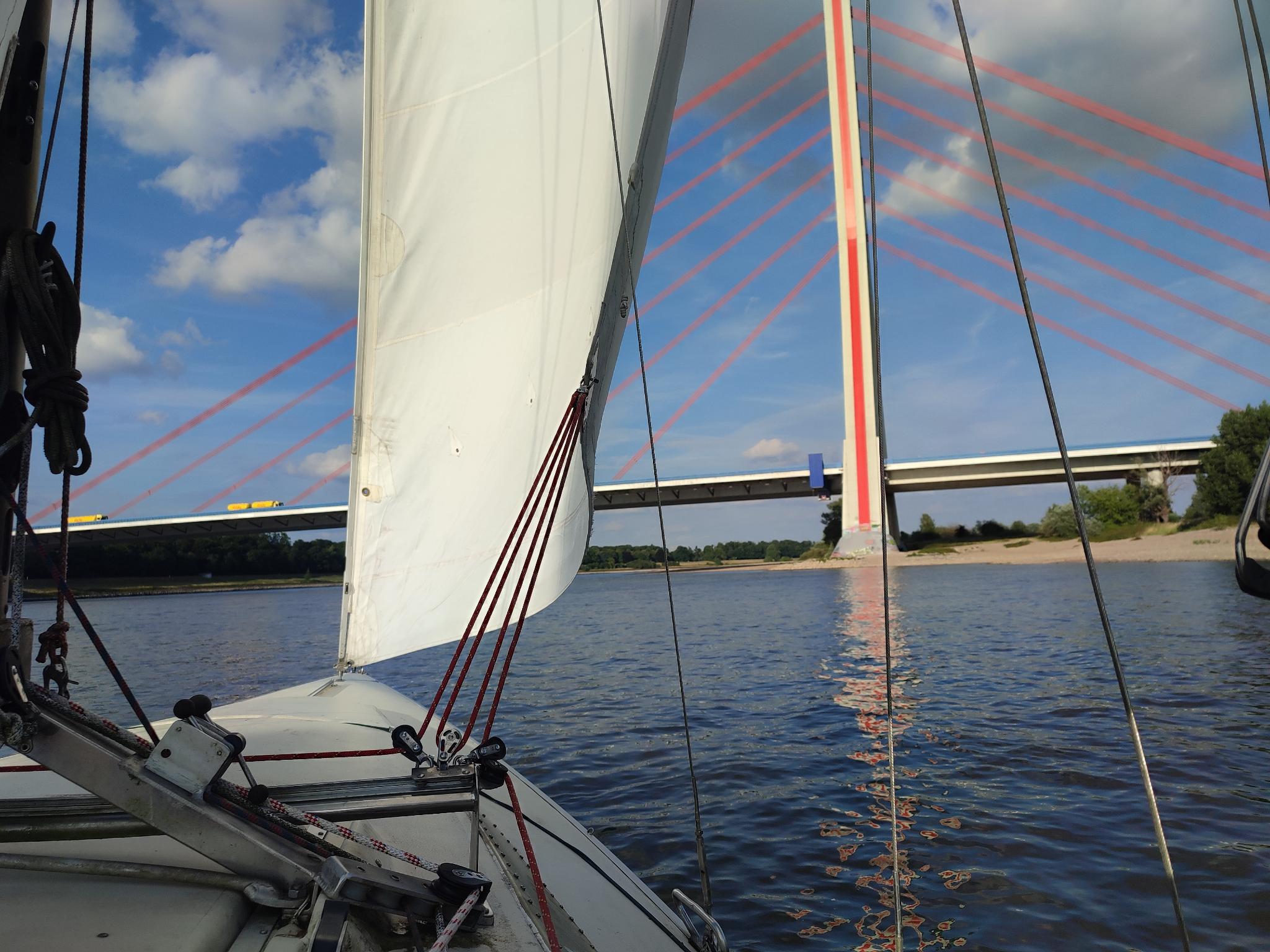 - Was auf jeden Fall auffiel, waren die vielen Nordlagen in dieser Saison. Diese bescherten uns sowohl Richtung Kardinal Frings als auch Richtung Fleher Brücke die Möglichkeit unseren Sport aus zu üben. Jeder Segler hat, was Windrichtung und Stärke angeht, so seine Vorlieben. Südostlagen machen das Segeln auf dem Strom bei Neuss annähernd unmöglich, die mag keiner. Südwestlagen sehen uns meist zur Fleher Brücke fahren, Ostlagen zur Kardinal Frings Brücke. Sicher ist aber, jeder liebt die Nordlagen. Der Wind kommt in angenehmer bis kräftiger Ausprägung und haucht in regelmässigen Abständen von ein paar Minuten eine stärke Böe zu uns, die das Boot anspringen lässen. Einfach nur toll.